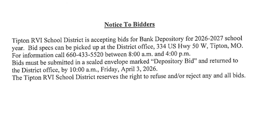 Please submit all proposals to the district office at 334 U.S. Hwy 50 W, Tipton, MO 65081 on or before